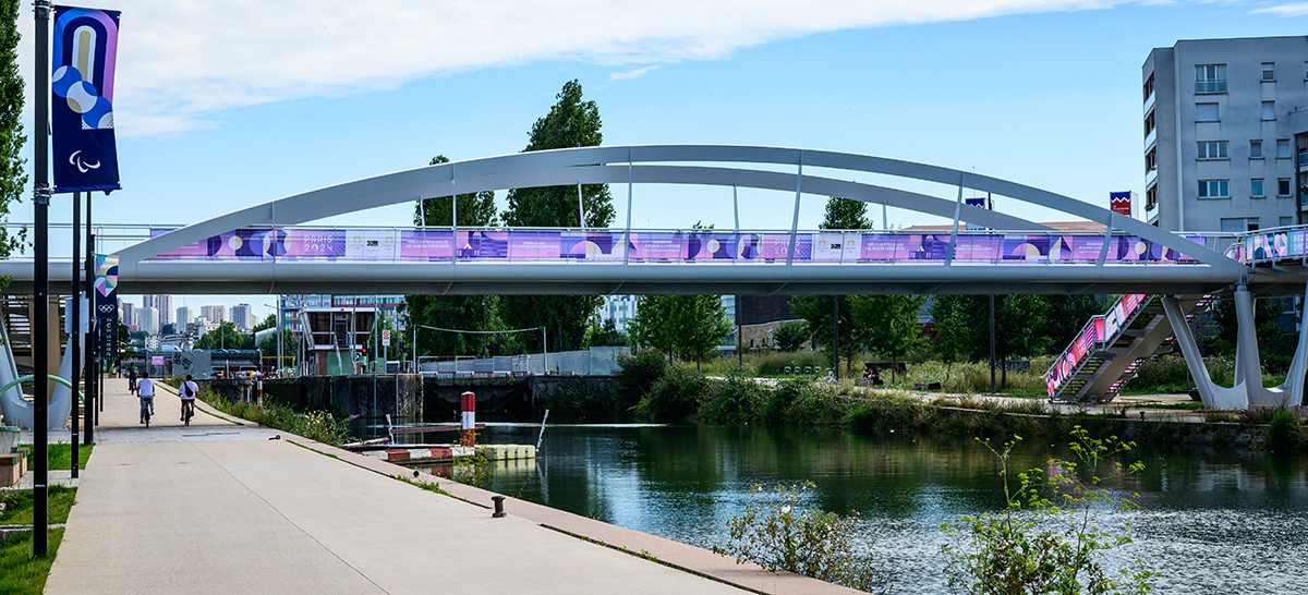 La passerelle Lucie-Bréard (Franc-Moisin), un des héritages durables et majeurs des Jeux de Paris 2024, permet de rendre accessible le Stade de France et de décloisonner les quartiers Franc-Moisin et Bel-Air de Saint-Denis. Large de 13 mètres, la passerelle mesure 50 mètres de long, dispose de deux rampes d’accès de 140 mètres situées de chaque côté du canal, ainsi que de deux descentes d’escaliers, de part et d’autre de la voie d’eau. De chaque côté ont été créées des espaces publics de grande qualité, avec notamment un parcours sportif et des espaces végétalisés.