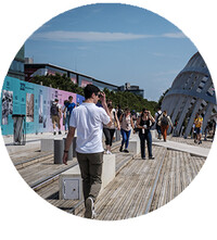 Plus qu’un pont, le Franchissement urbain Pleyel est un espace à vivre, un nouveau morceau de ville qui relie les quartiers Landy-France et Pleyel, aujourd’hui séparés. Tour à tour belvédère, lieu de culture, de vie, d’activités et de commerces, ses nombreux usages vont vous surprendre ! C’est parti pour la traversée…