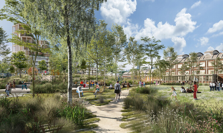 Autour de ces hangars patrimoniaux transformés en musée, sera édifié un quartier écoresponsable ouvert sur le paysage qui fera la part belle aux espaces verts et à un habitat de qualité, des aménagement pensés dans une approche bas carbone alliant écoconstruction, économie circulaire, écomobilité, énergie renouvelable et gestion vertueuse des eaux pluviales.