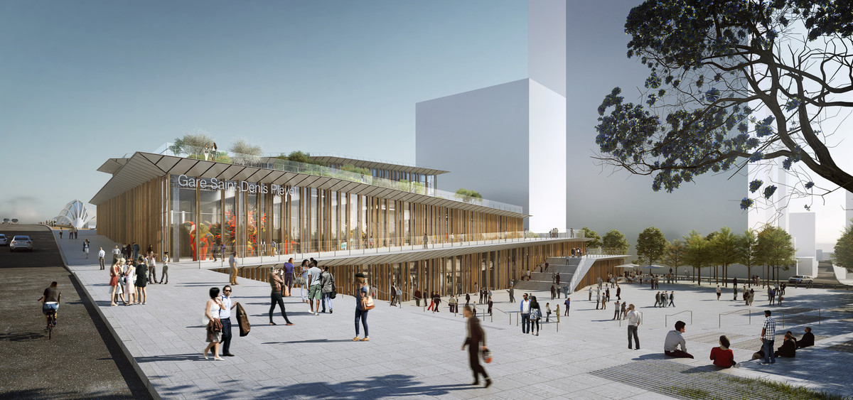 La future gare Saint-Denis Pleyel sera la plus grande et la plus interconnectée des gares du grand Paris Express avec, à terme, plus de 250 000 voyageurs par jour. Conçue par l'architecte Kengo Kuma, elle accueillera également dans les niveaux supérieurs un lieu d'innovation culturelle de 5000m2 donnant sur les jardins en toiture.